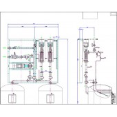 • общая рама с заправочными колонками, насосами подачи СУГ, емкостной запирающей арматурой, грязеуловителем, байпасными клапанами, трубопроводами жидкой фазы;